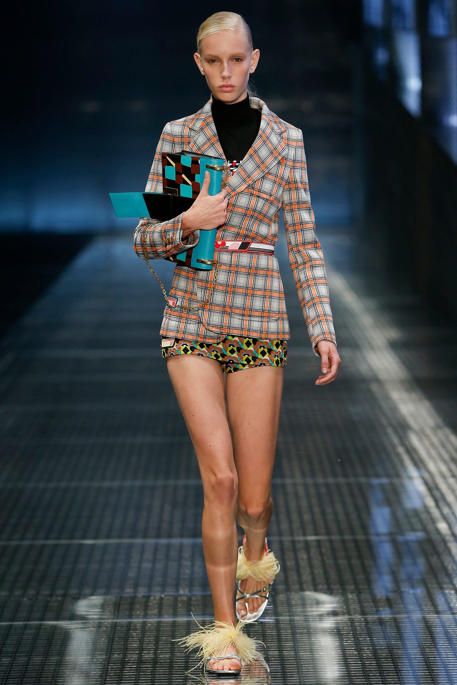 В нашей семье коллекция Prada весна-лето 2017 пользуется особым уважением. Считаю, что Миучча фактически нафаршировала ее крутостью: перьями, сочетаниями безумных принтов, прорезиненными липучками на юбках, пальто и ремнях, пижамками в японском стиле, пайетками и шикарной обувью. Какой лук из этой коллекции ни вырви, он будет 10/10. И если бы этот жакет подходил мне по размеру, объявление о продаже уже было бы снято…